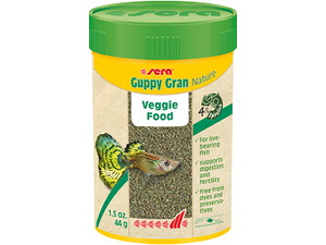 sera Guppy Gran is the herbal food consisting of carefully manufactured soft granules for all mainly herbivorous fish that eat in the middle water layers.